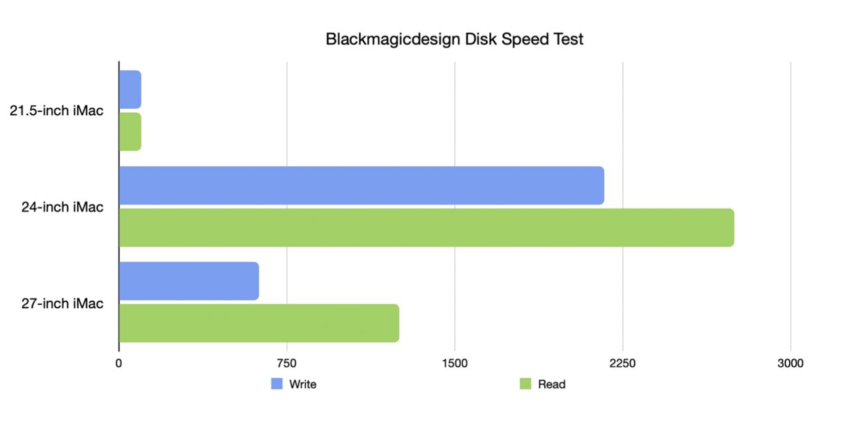 Tốc độ đọc SSD trên imac so sánh với các phiên bản cũ hơn