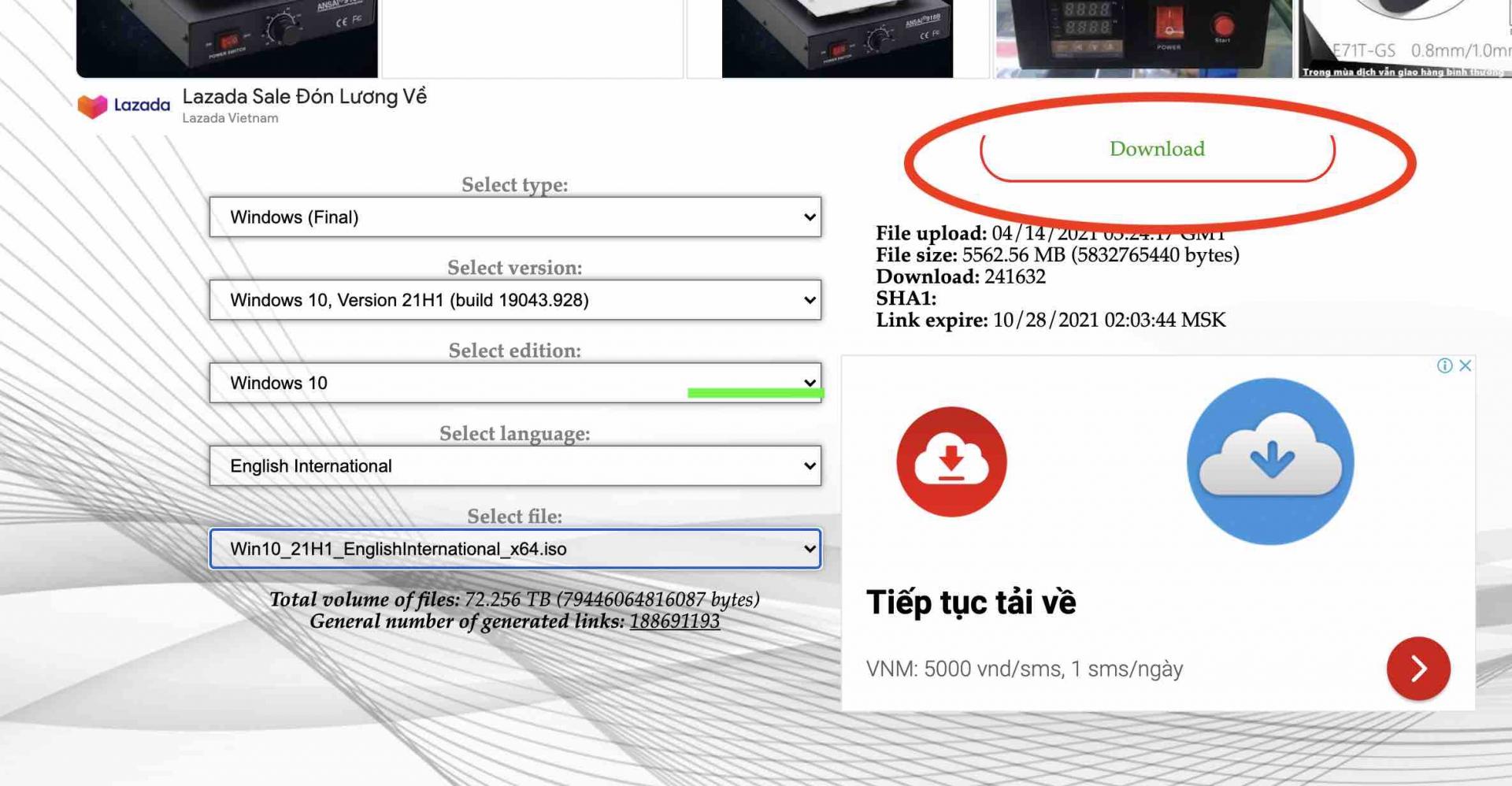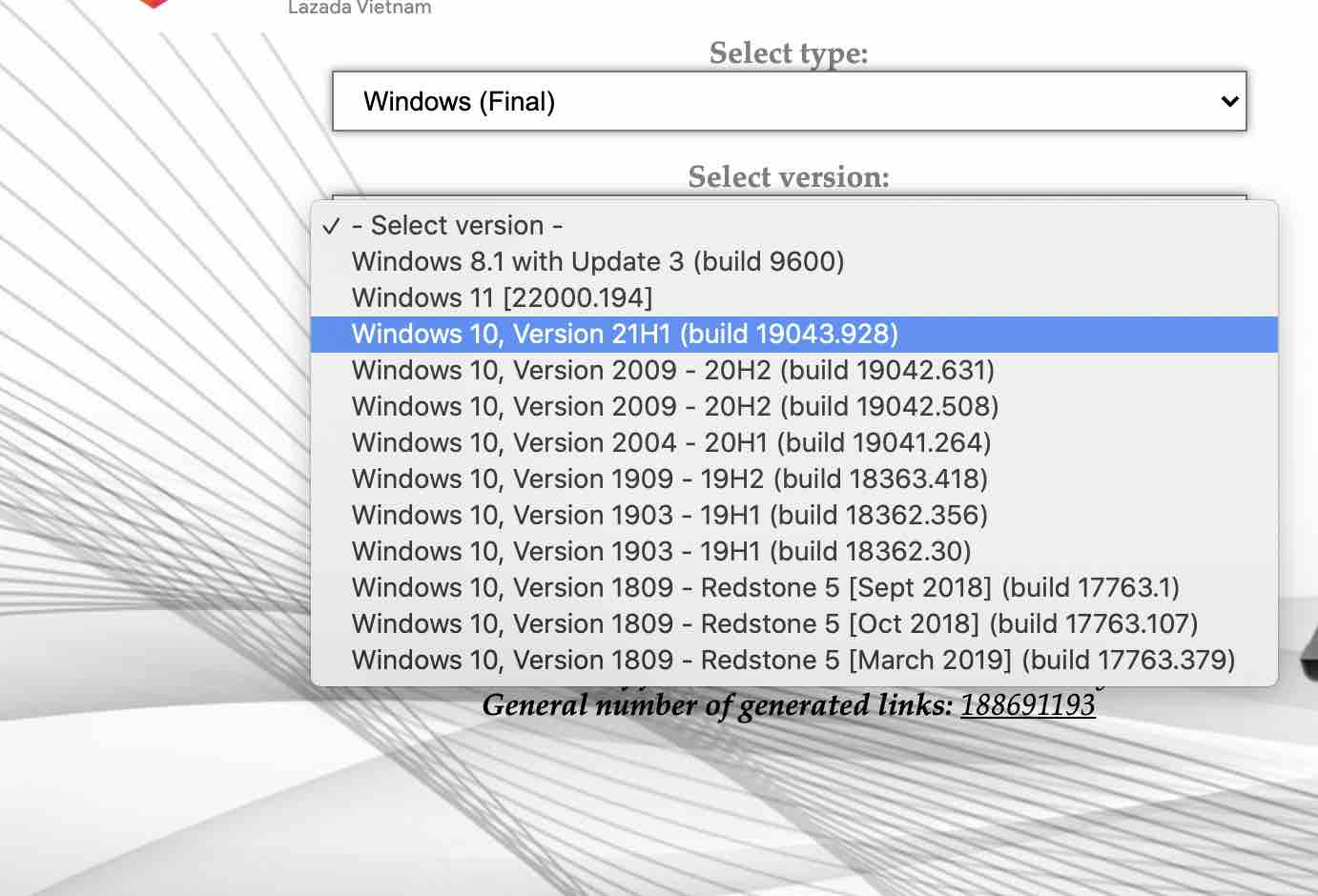 Tiếp theo là chọn phiên bản window mà bạn muốn tải , ví dụ window 11 , 10 hay 8
